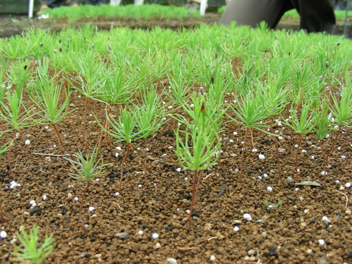 新沼さんが高田松原で拾った松ぼっくりから採取した種子から発芽し、育っている松の幼苗。